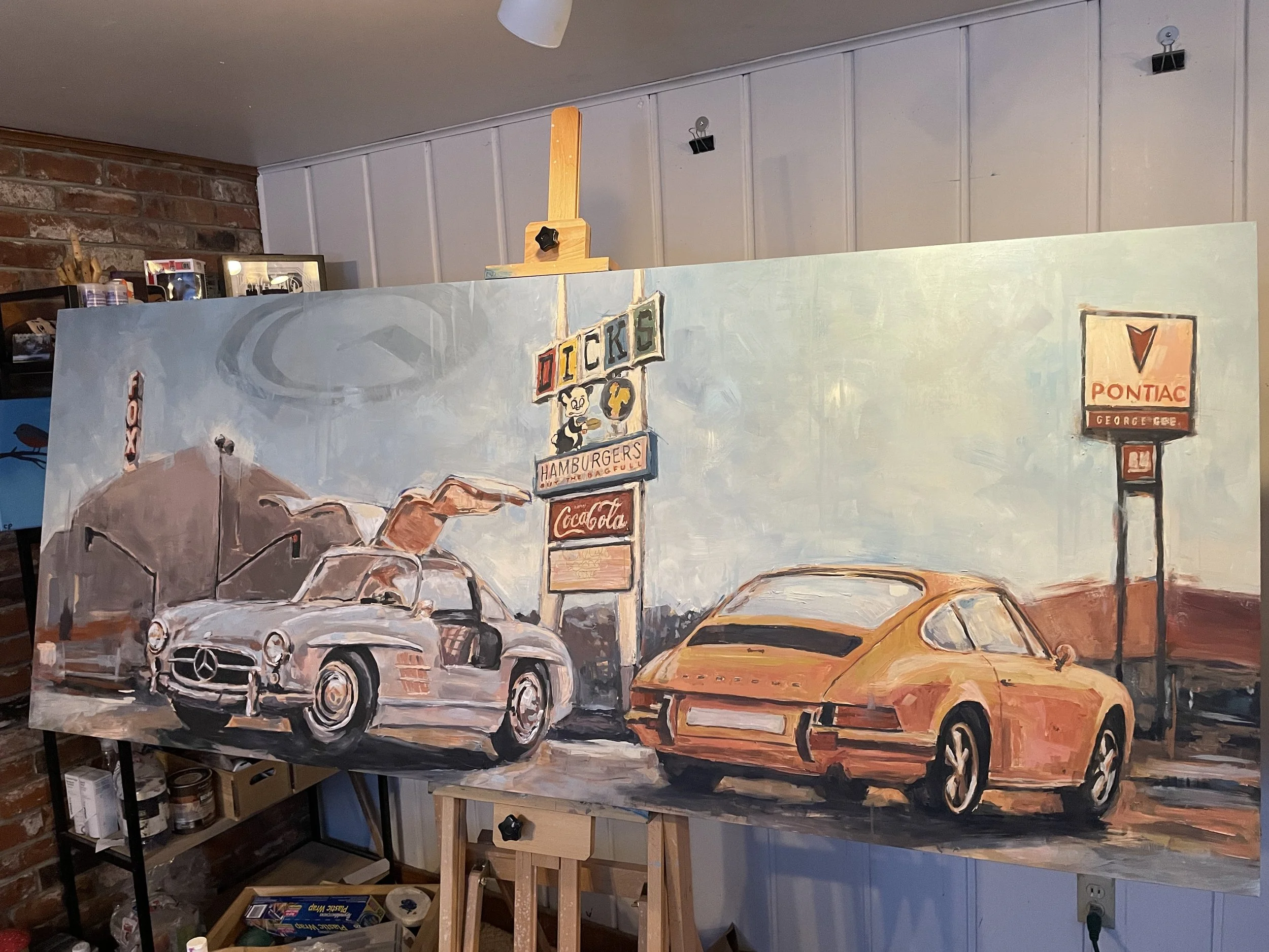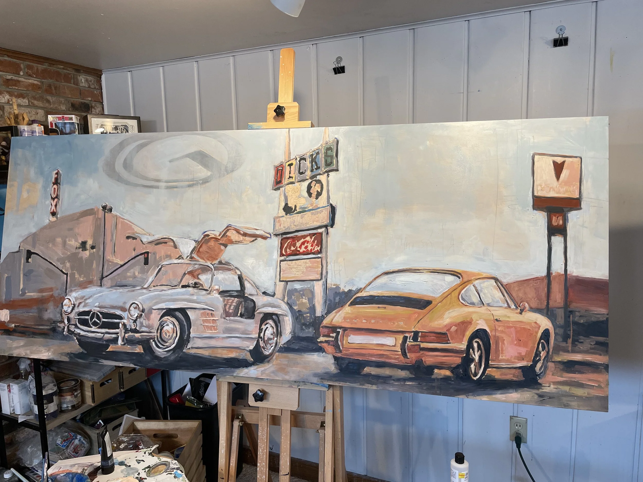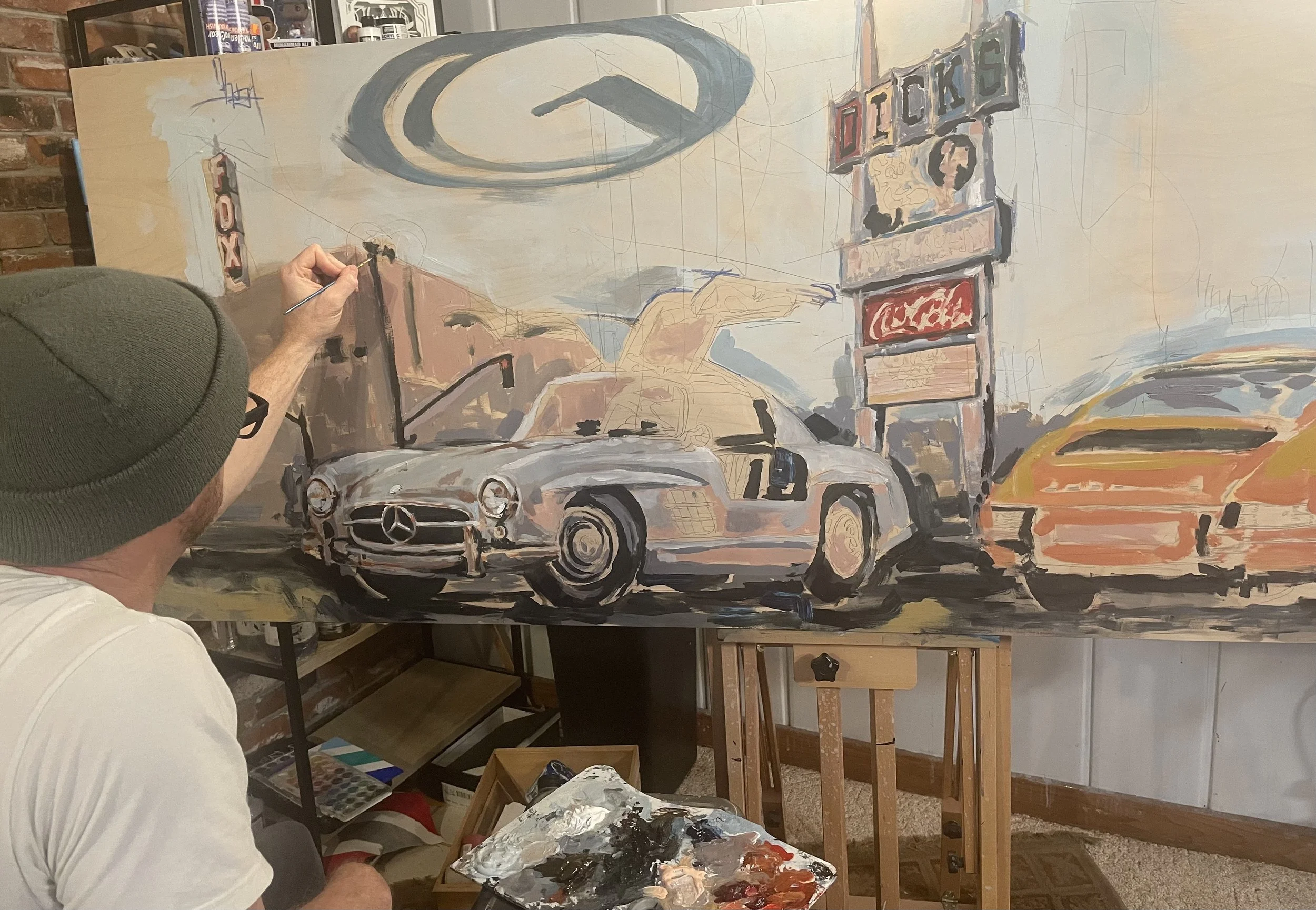 Jesse, a classic car enthusiast himself, is experienced at blending different materials and techniques to create one-of-a-kind pieces that reflect your passion and admiration. When capturing a dynamic portrayal of an iconic automobile, each artwork is infused with distinctive details that set it apart. Let us bring your love for cars to life through our personalized and exceptional creations.